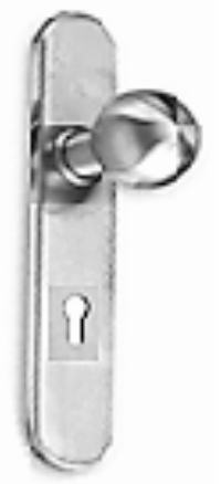 POMO CON PLACA LARGA: Pomo fijo por ambos lados, Cuadrante de 8mm. Placas con bocallave para cerradura con cilindro de perfil europeo. Acabado: Acero Inoxidable