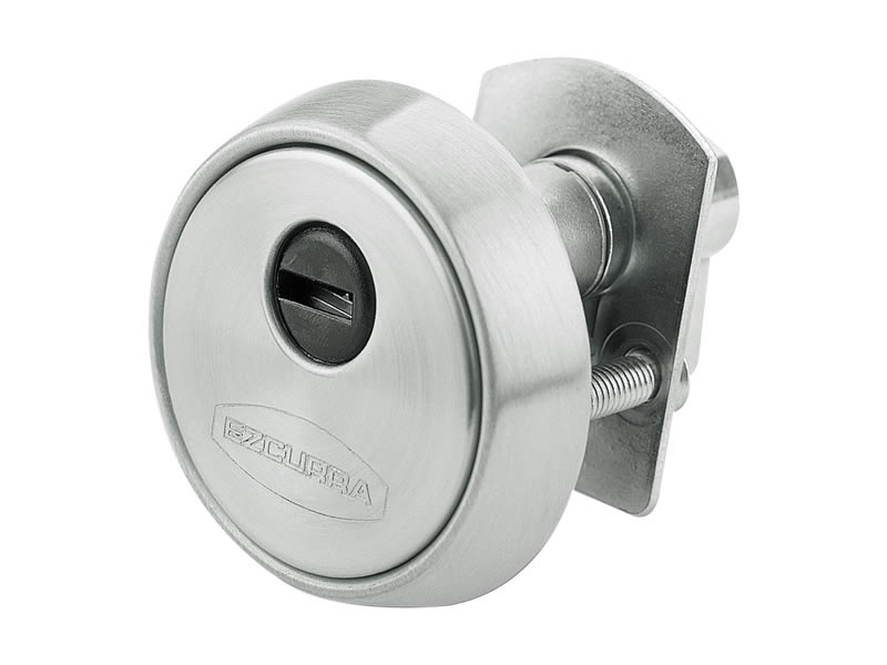 Formado por tres piezas: escudo templado, contraescudo y embellecedor. El cilindro queda totalmente oculto. Acabado: Acero Inox y Cromo Brillo.