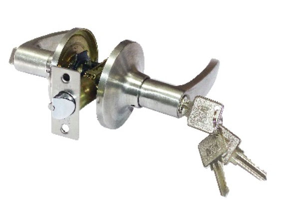 MANIJA TUBULAR ENTRADA 6411-ST CERRADURA PARA PUERTAS DE ENTRADA PRINCIPAL. Manija tubular, apertura exterior con llave, interior libre, sistema anti-tarjeta, con tres (3) llaves, en acero inoxidable.