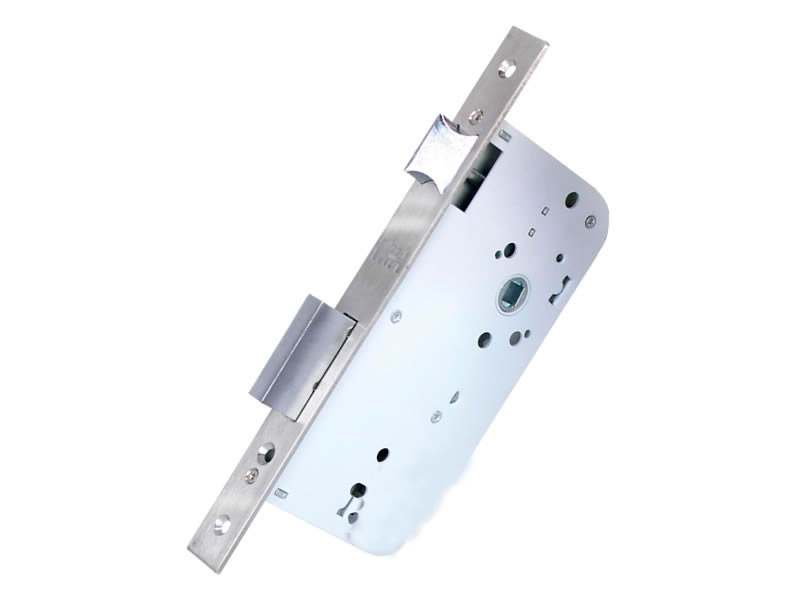 CERRADURA ENTRADA PRINCIPAL: Pasador cuadrado de latón cromado (2 vueltas). Pestillo (picaporte) resbalón reversible (puertas izquierdas o derechas). Mecanismo de embutir protegido en caja de acero. Mecanismo con entrada (Backset) a 60 mm. SIN CILINDRO Acabado: Acero Inoxidable.